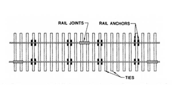 Usually, rail anchors are used in certain locations of railway. When anchors are used, taking a 39 foot rail as the example, 8 rail anchors are usually commended, as shown in the following diagram. With the increasing of the steep grades, the number of rail anchors may be increased.